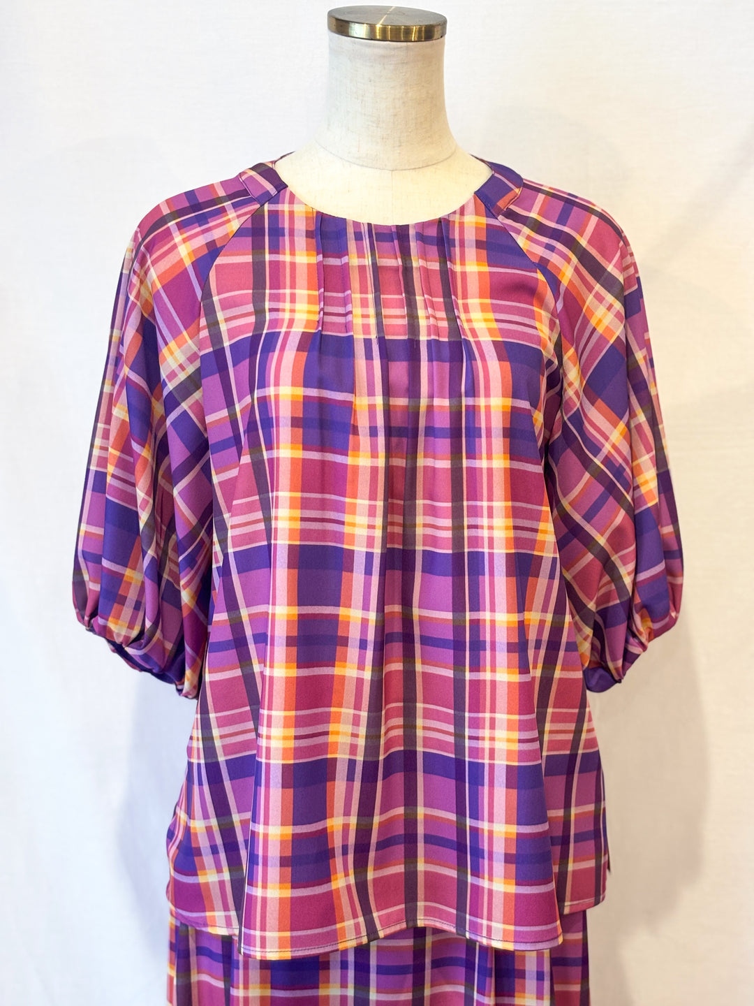 バルーンスリーブチェックブラウス