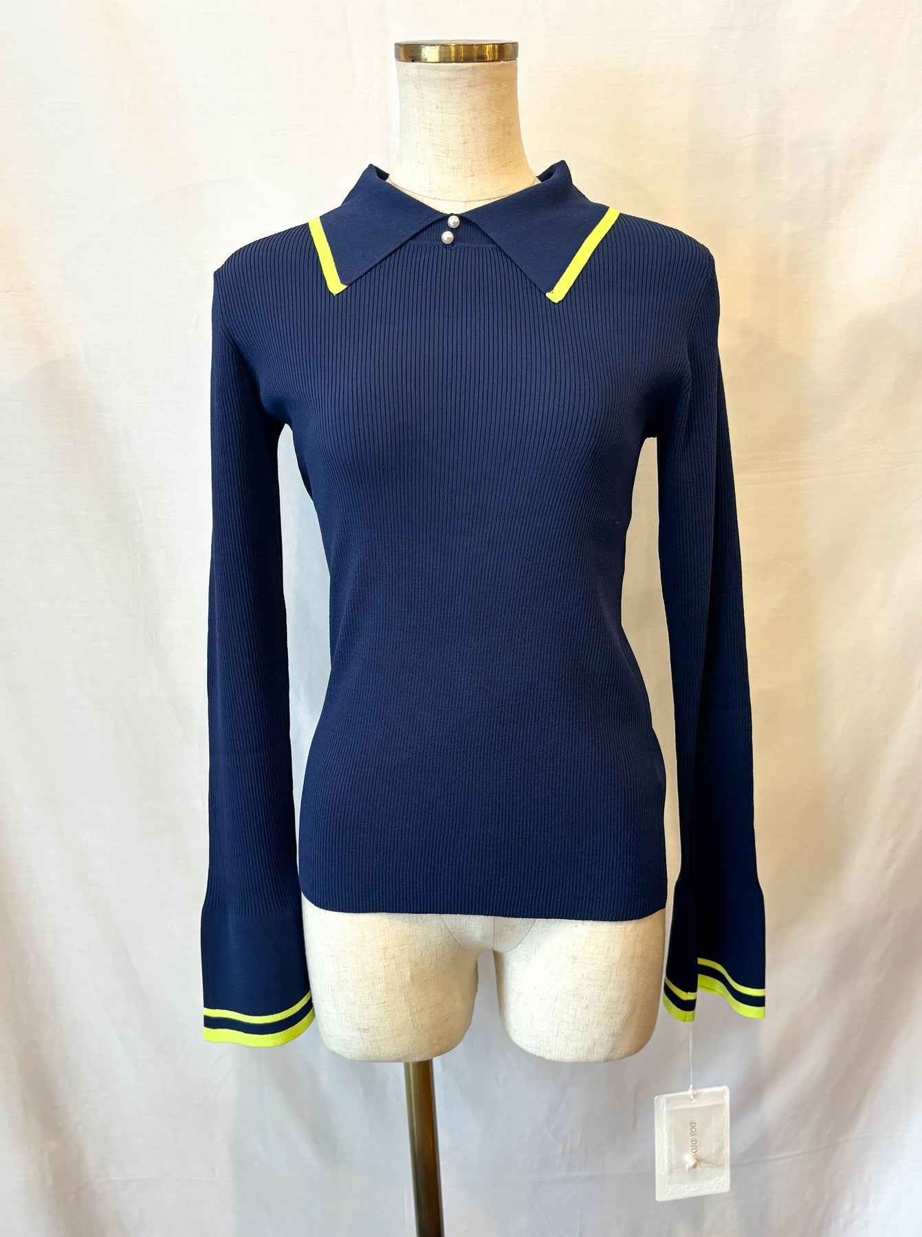 ブラックとネイビーの大人配色が洗練された印象に♡ ややフレアな袖がさっと華やぎをプラス◎