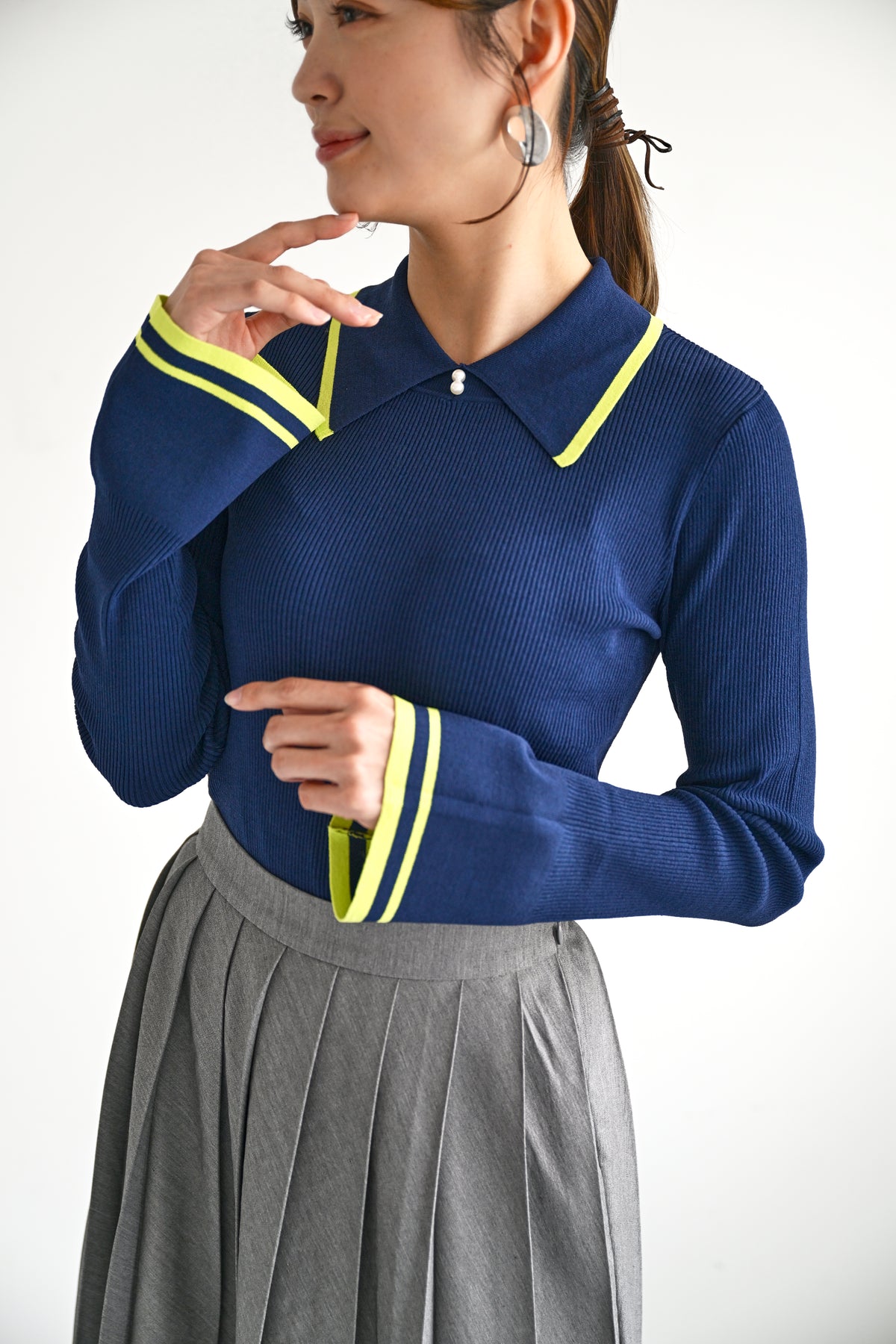 ライン配色が映えるリブニット