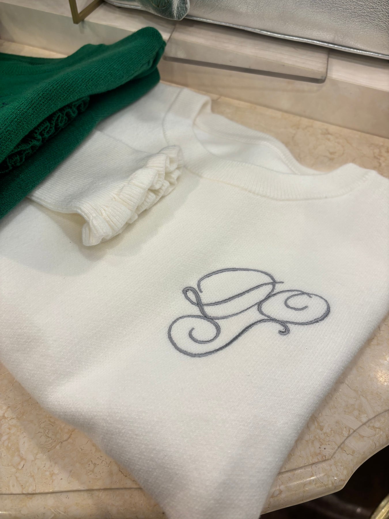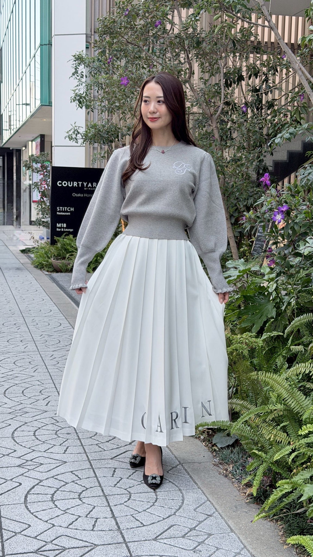 胸元にさりげなく入ったロゴ刺繍がポイントのニットトップス♡ さりげないブランドアピールで大人の余裕あるお洒落に◎