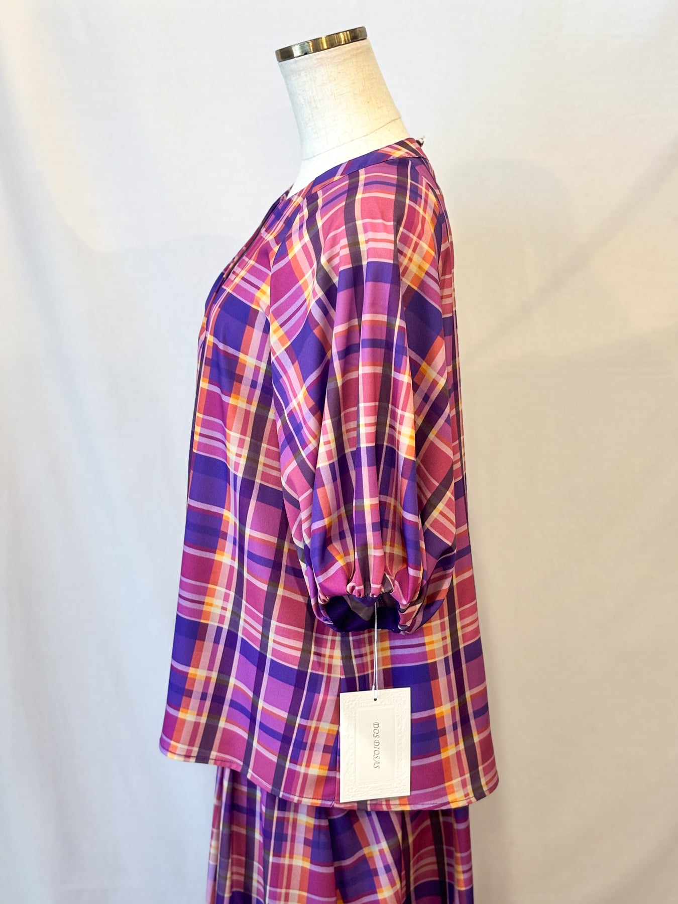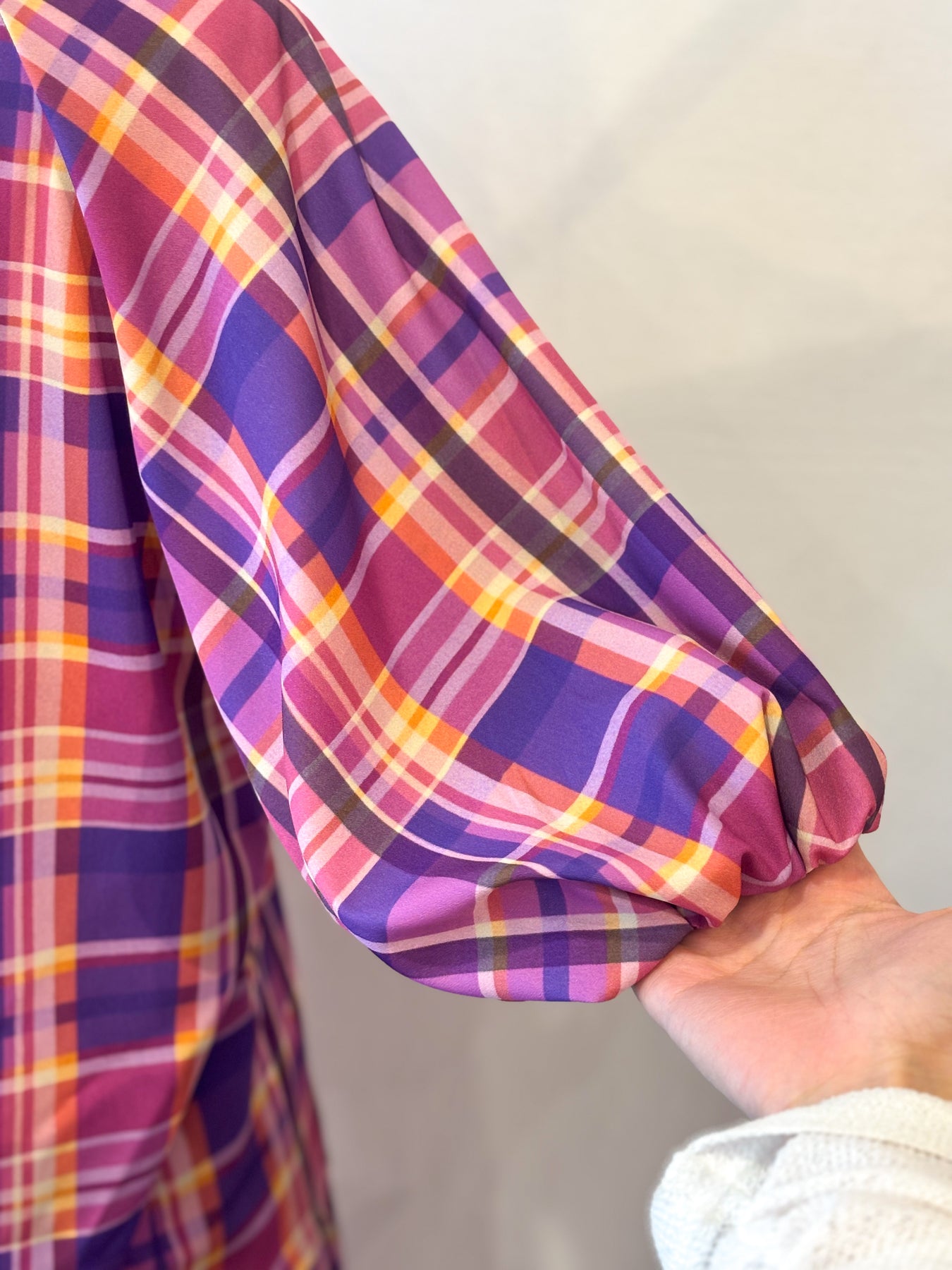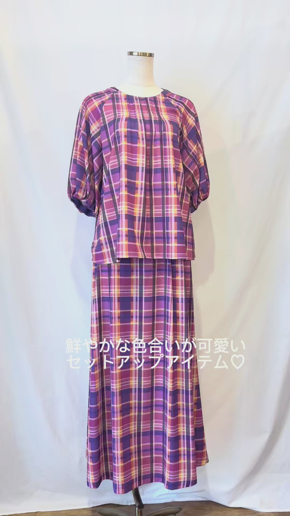 一枚で華やかな印象に仕上がる♩ バルーンスリーブが可愛いチェックブラウス