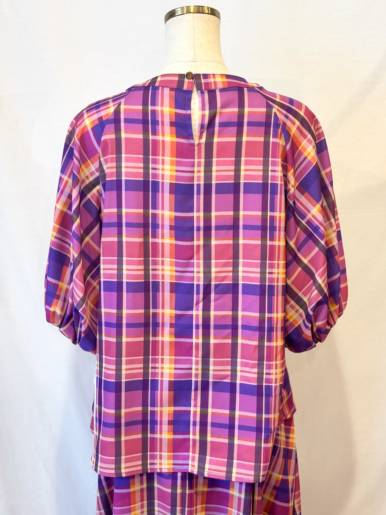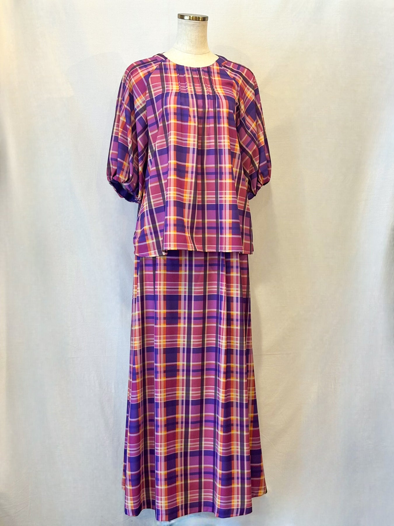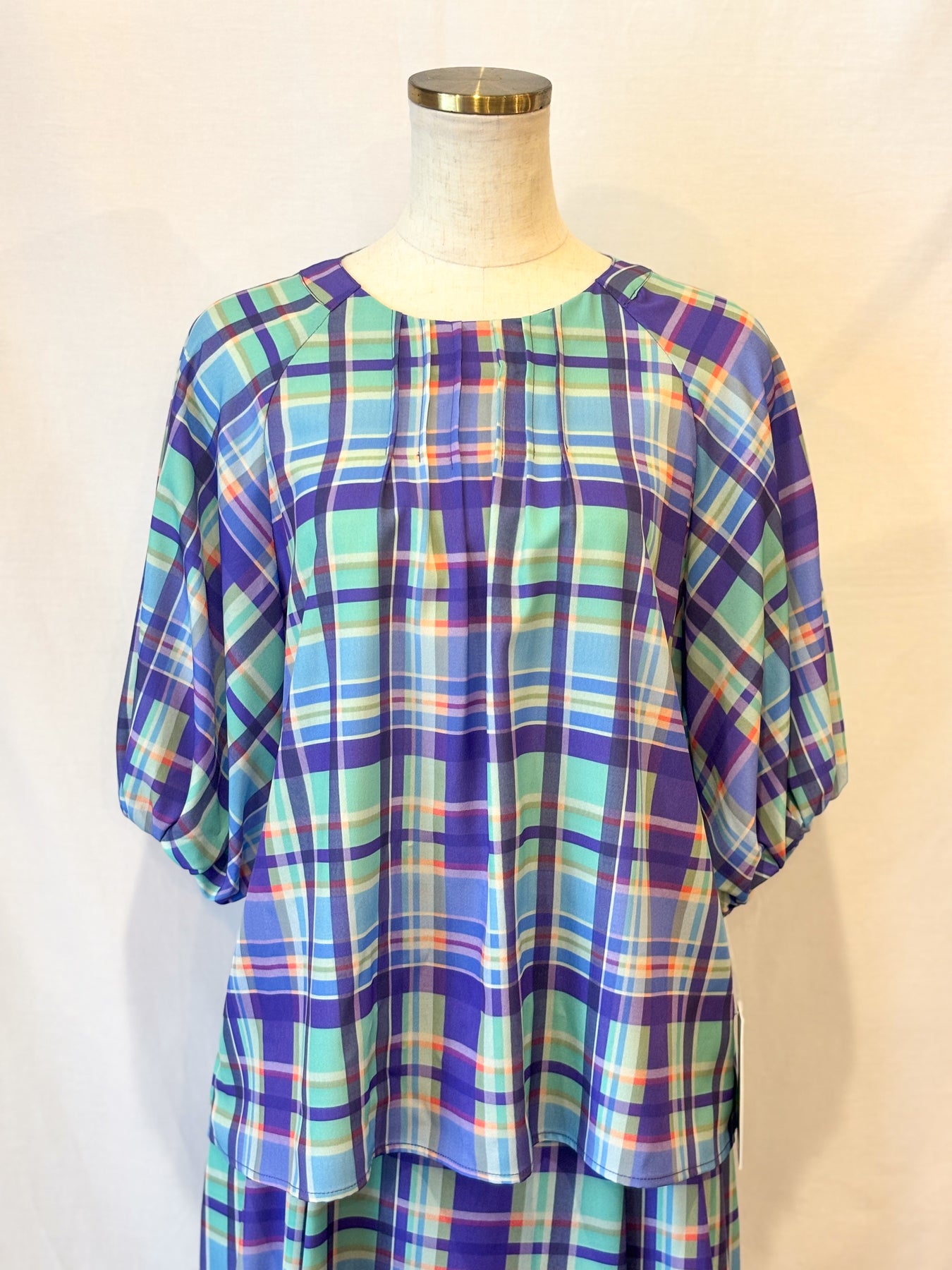 一枚で華やかな印象に仕上がる♩ バルーンスリーブが可愛いチェックブラウス