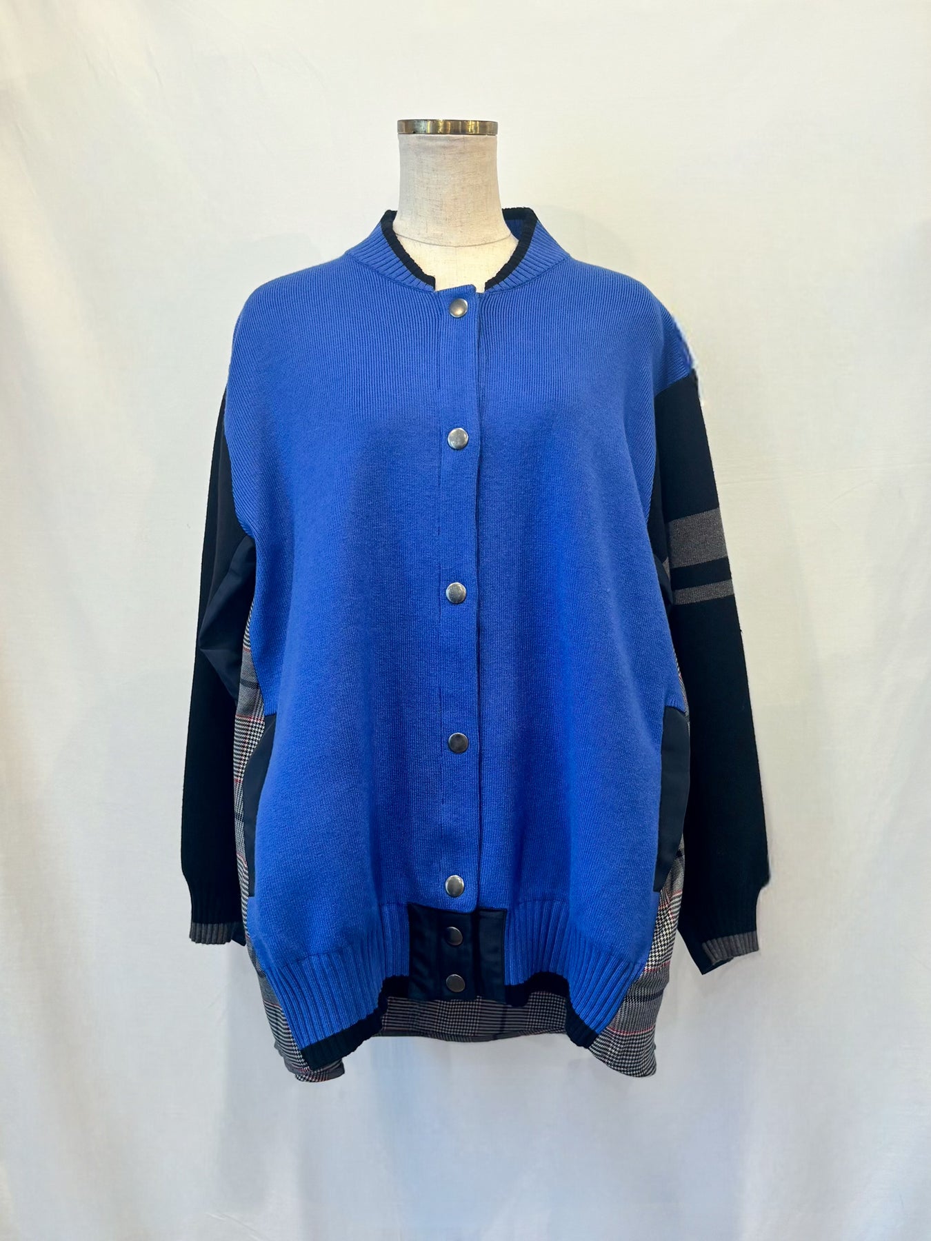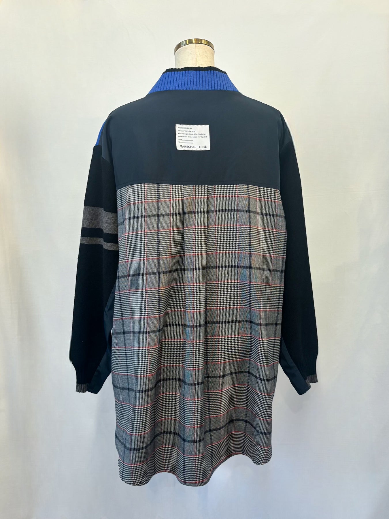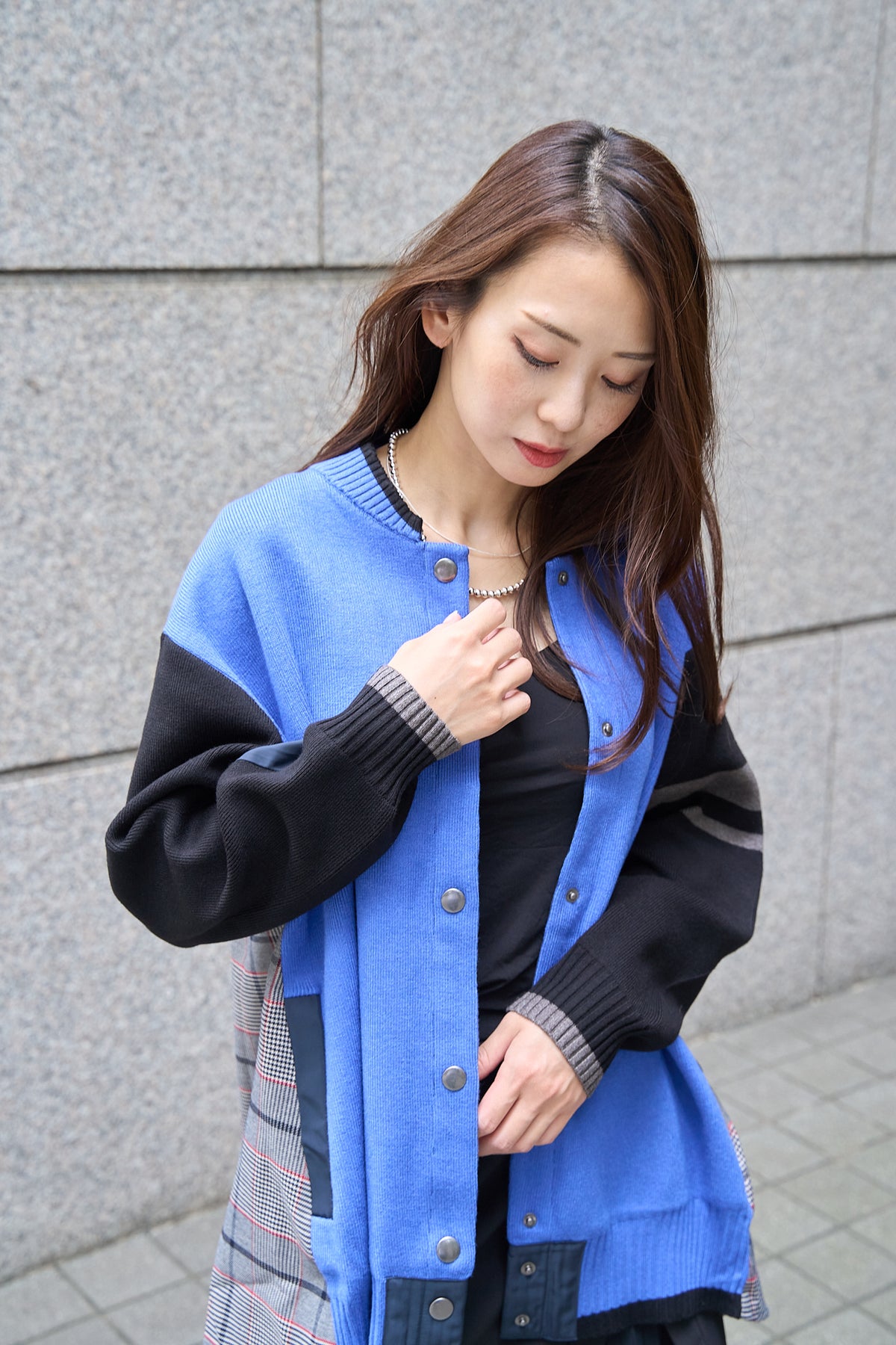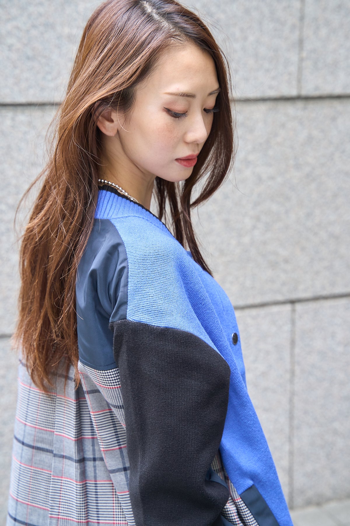 後身頃にはツィルと柄の2素材を使用することで、ハリと奥行きを演出し、着こなしにシャープさをプラスします。異なる素材感が絶妙に調和した、存在感のあるニットアウターです❤︎