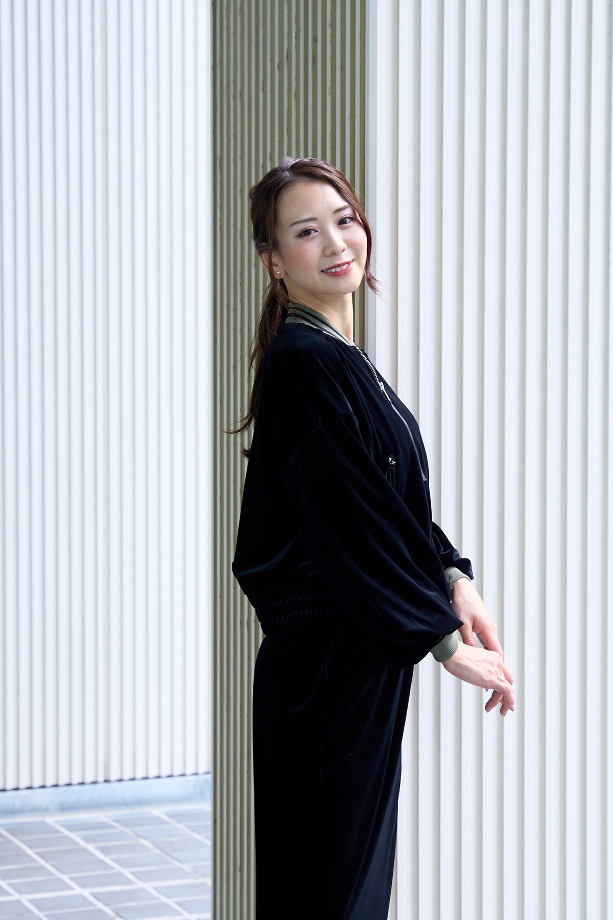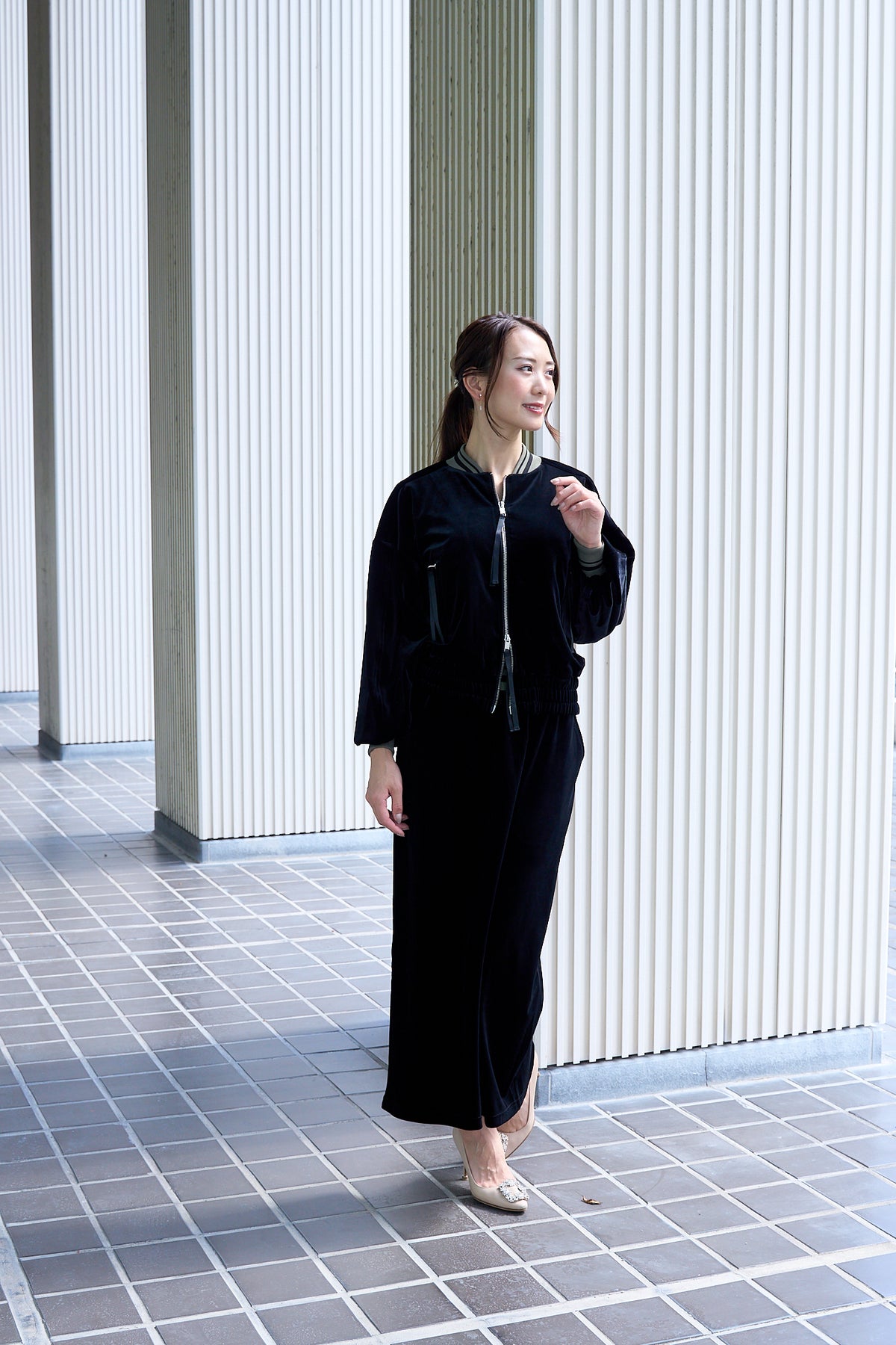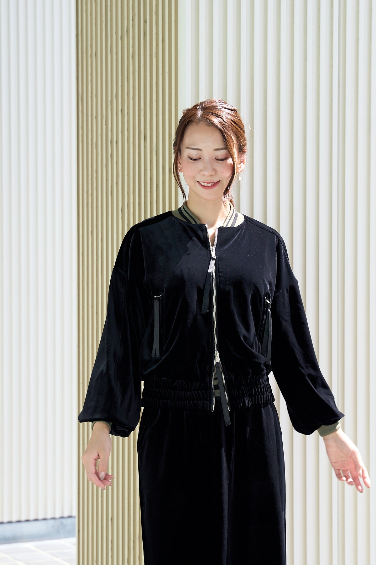 光沢と質感が魅力のベロア素材で仕立てたブルゾン♡