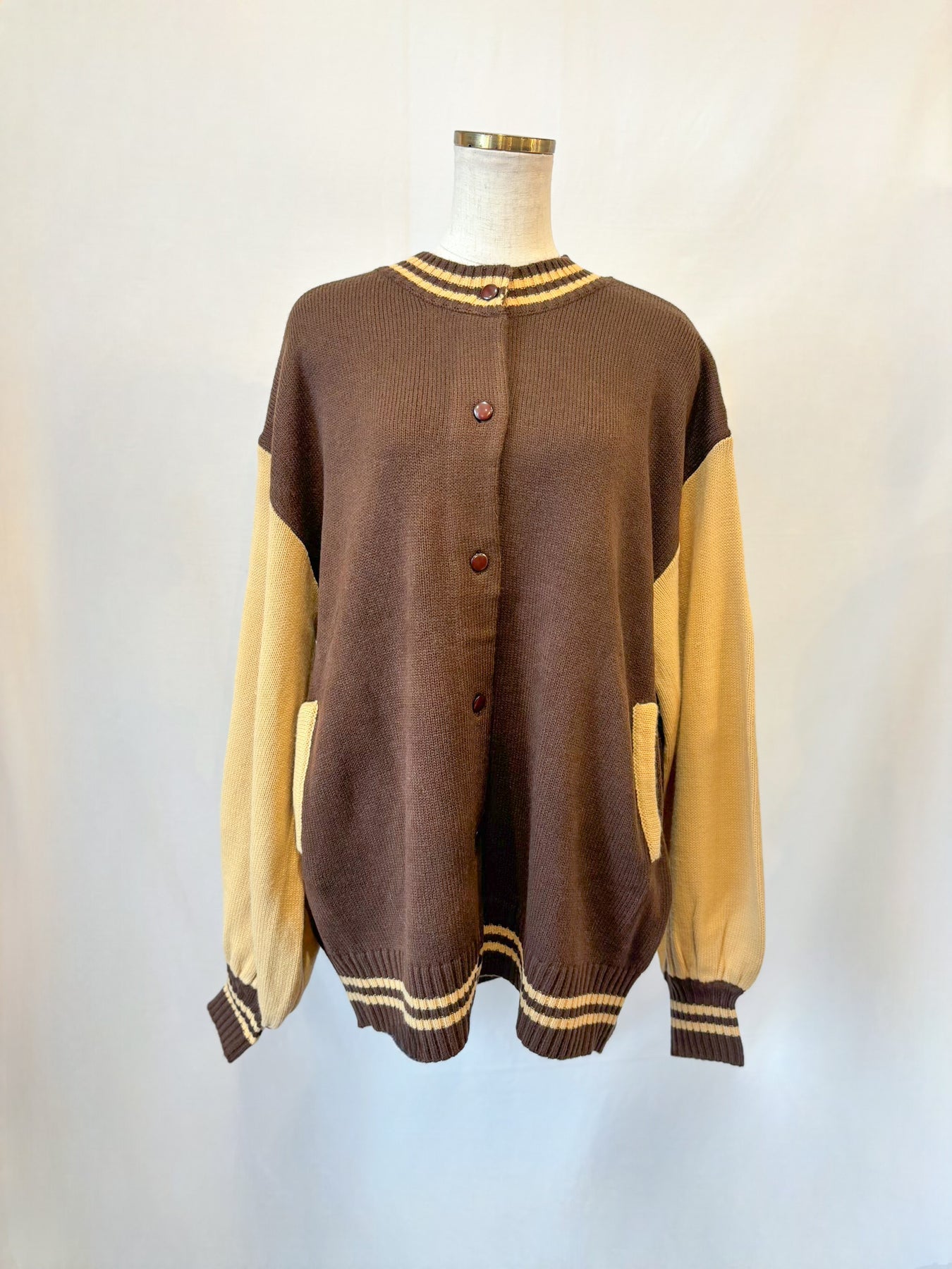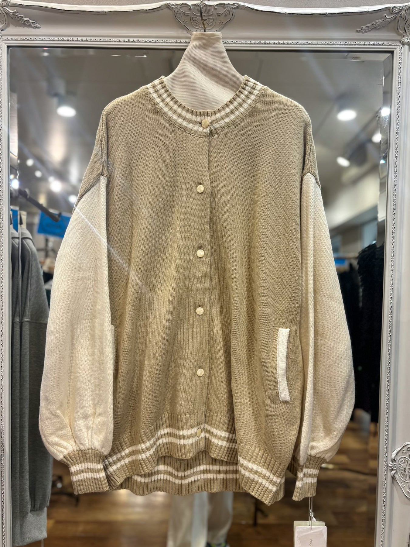 秋口、春先はライトアウターとしても、ボタンを閉じてニットとしても。オシャレに差が付く一枚です✴︎