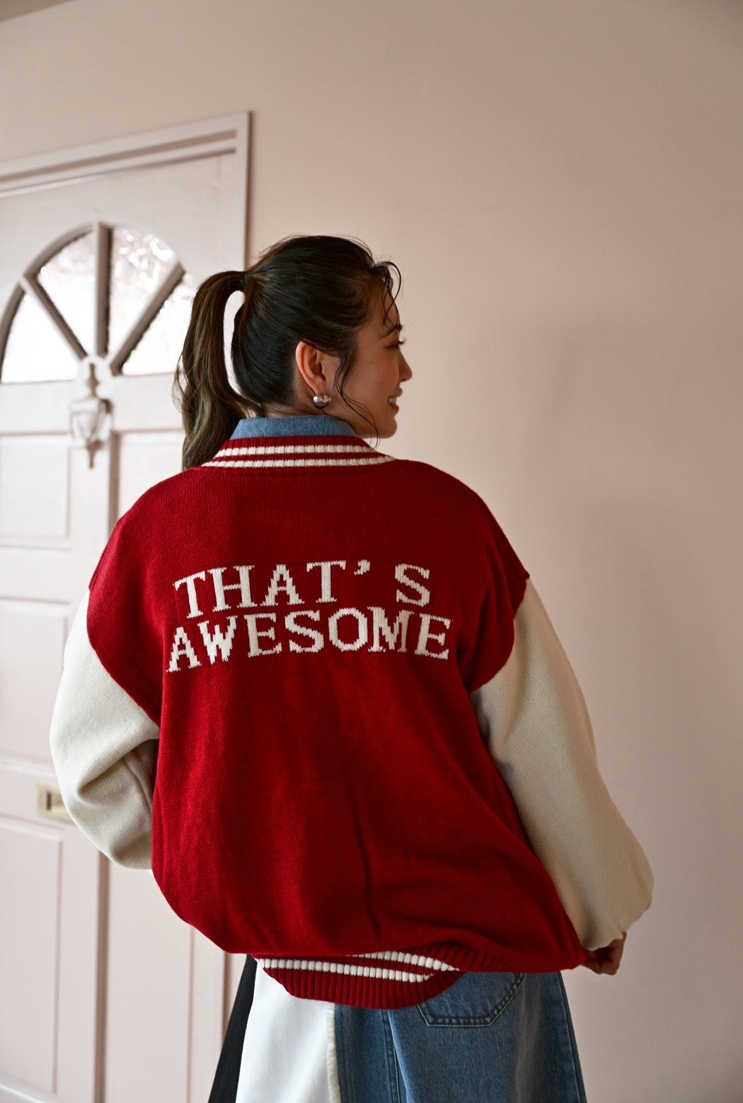 バックロゴが印象的なニット仕立てのスタジャン