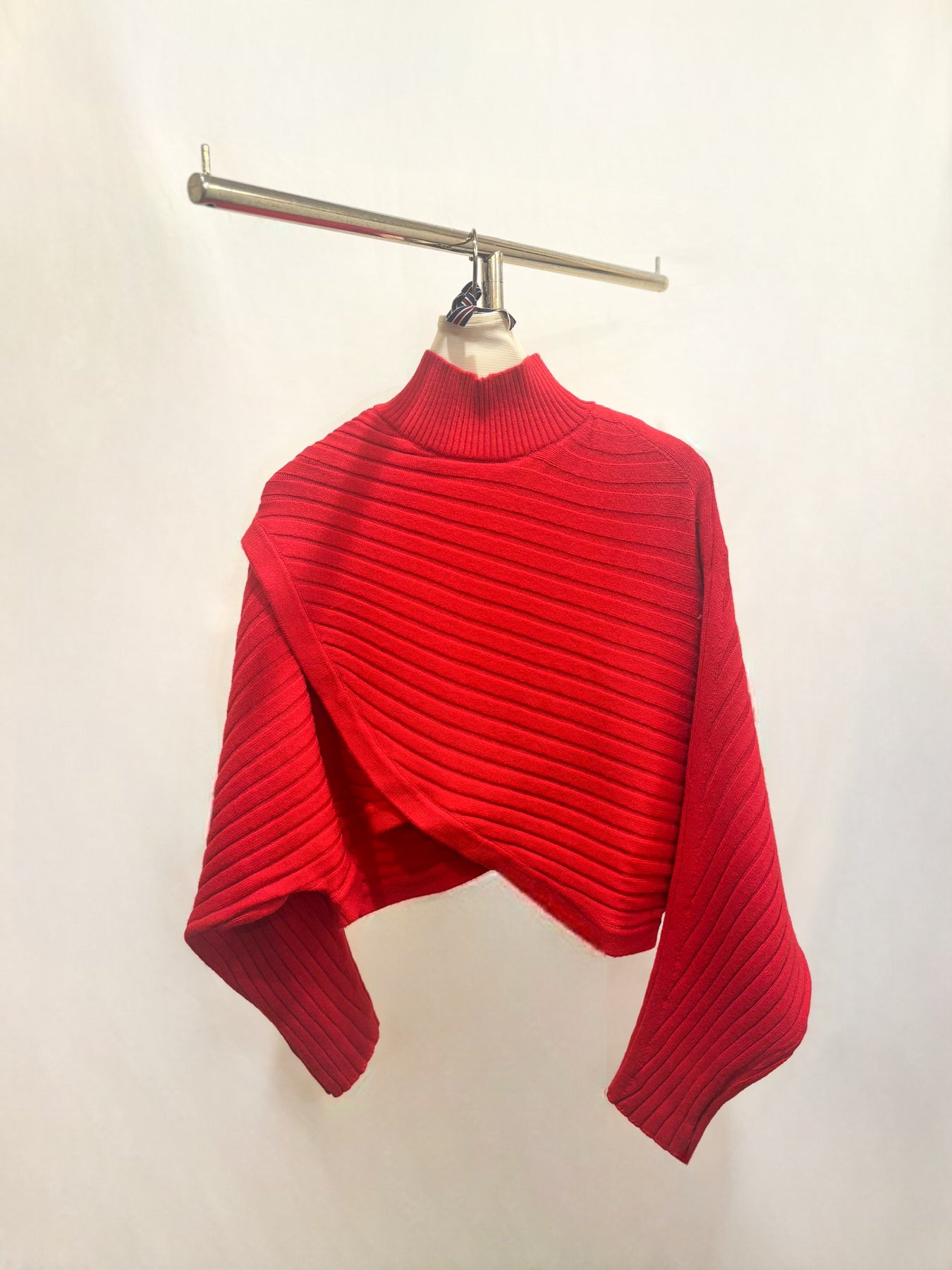 リブハイネックショート丈ニット