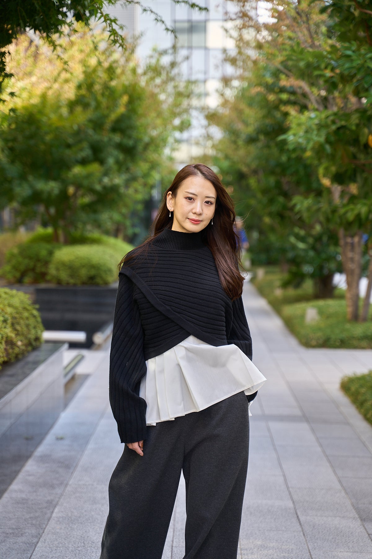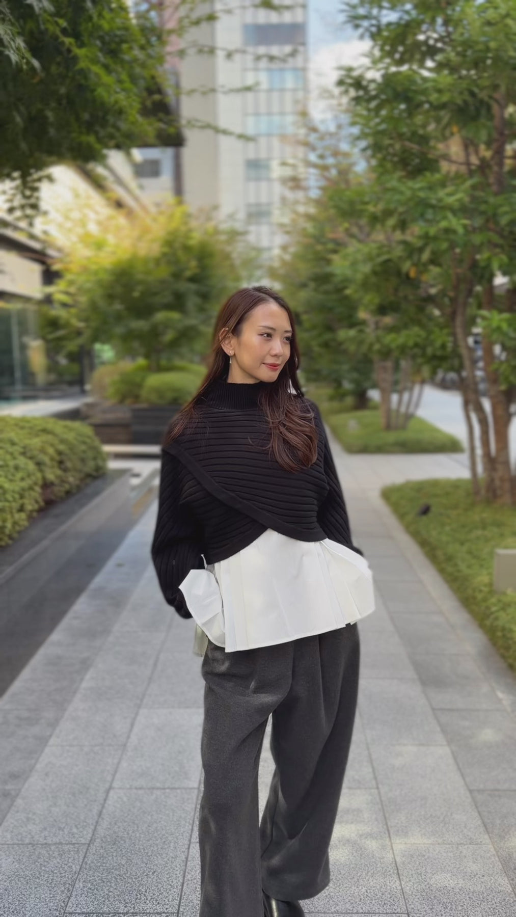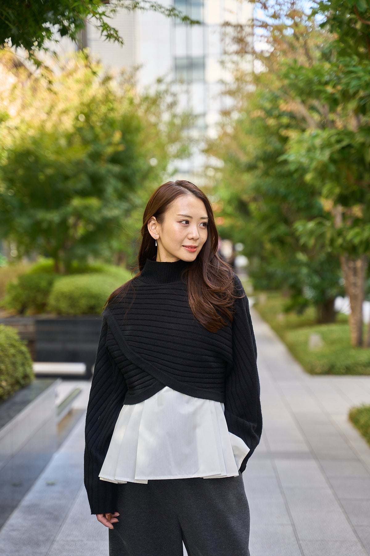 ハイネック仕様&リブ編みで首元&ウエストのラインがすっきり◎