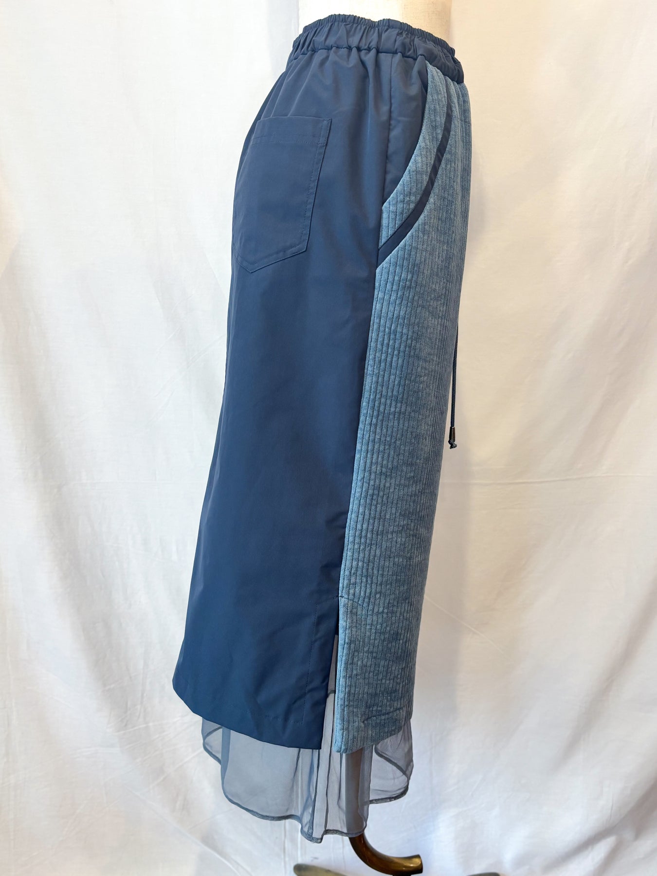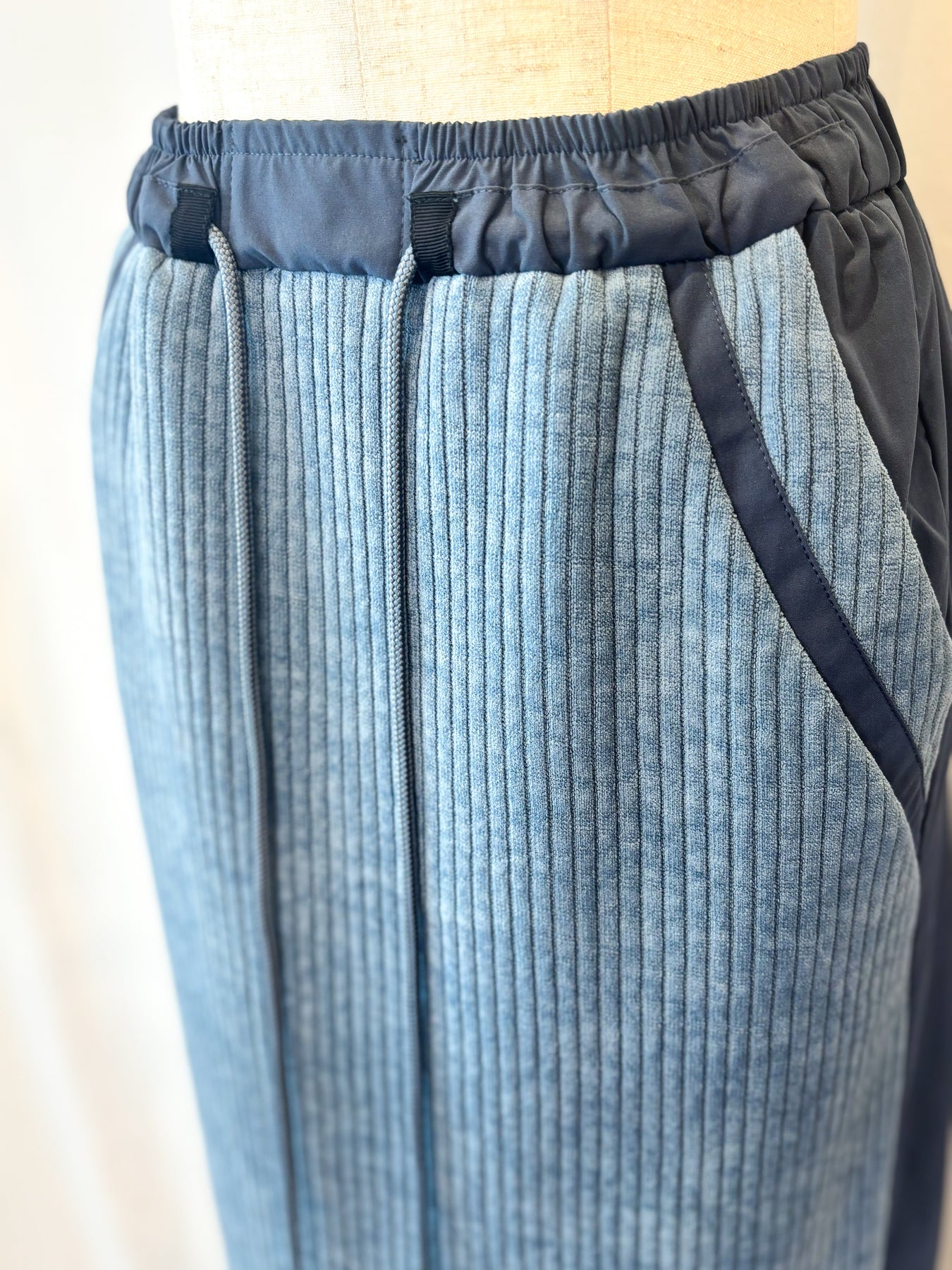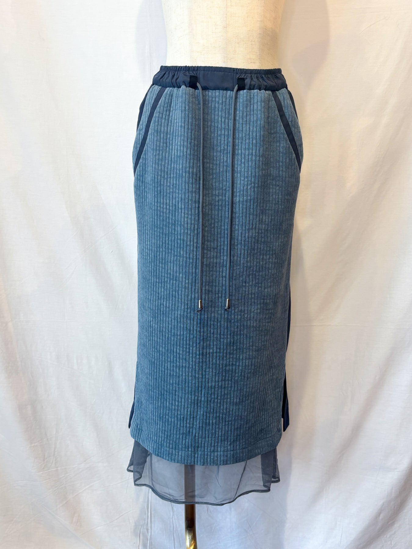 ストレッチが効いた太畝のコーデュロイを使用したデザインスカート。