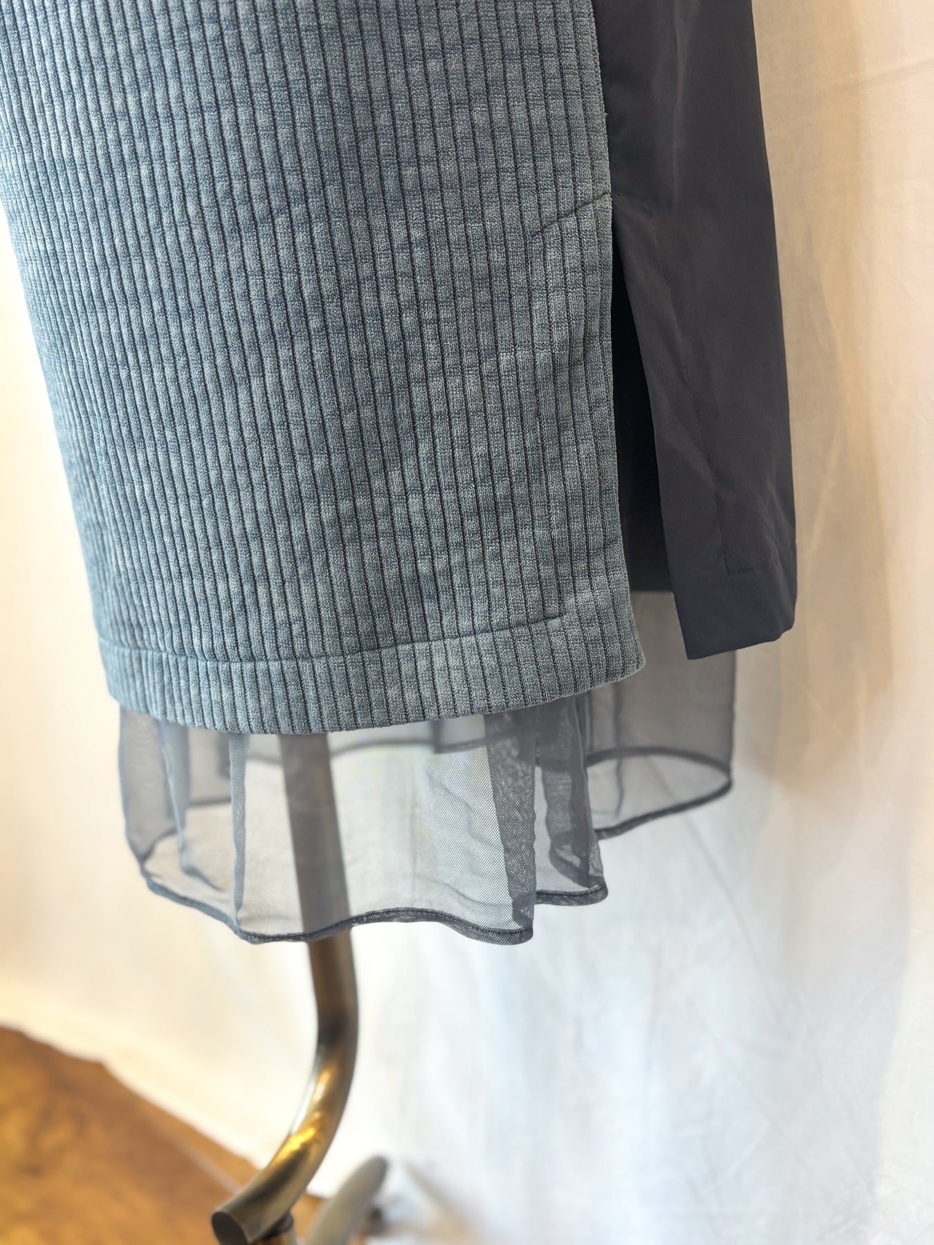 バックシルエットに布帛素材をドッキングすることで横からのシルエットをスッキリ見せてくれます。