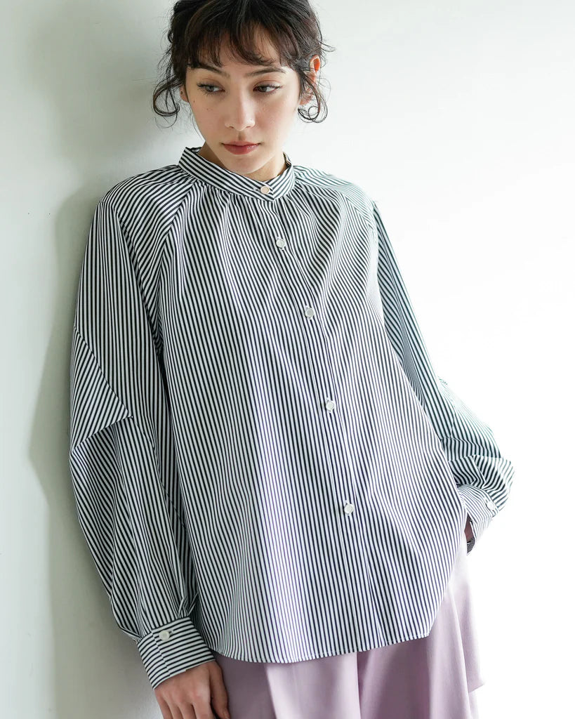 適度なハリがあり、袖に入ったタックが引き立つデザインです。