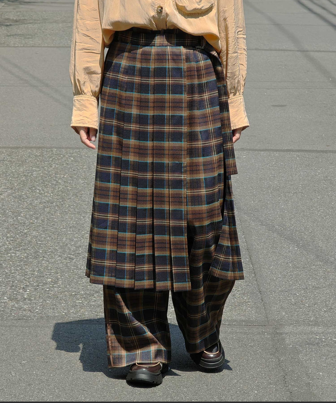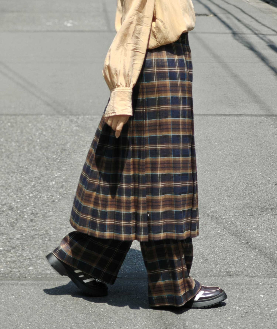 スカートはウエストに巻くタイプで、体型や好みに合わせて調整OK。歩くたびに揺れるプリーツが、動きに表情を加えます。